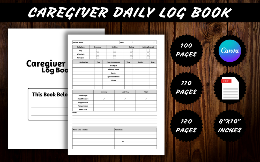 Caregiver Daily Log Book | KDP Interior 8×10 in